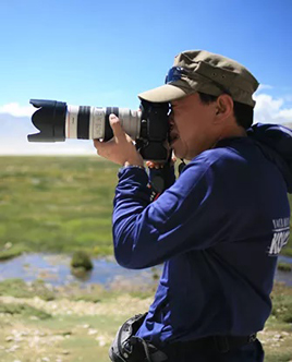 赵春江,男,吉林省文联副主席、吉林省作家协会副主席 、高级编辑、吉林大学文学院兼职教授,曾任城市晚报社总编辑。截止2011年,他已十七次进西藏,两次进陈塘,以优秀的视觉艺术提供了破解夏尔巴之谜的文化密码。记者在采访中了解到,为了准备这次主题展览,赵春江曾在2008年和2009年两次深入陈塘,克服常人难以想象的高山反应和泥石流、滑坡、落石、雪崩、蚂蟥区等危险,数十次翻越海拔五千多米以上的山口,拍摄了数十万张图片和数十小时的珍贵影像资料。