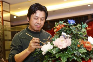阚凤祥,男,生于1959年,扬州市人,高中文化,1977年进入扬州漆器厂,擅长雕 漆嵌玉。1999年创建了扬州市广陵区润祥漆器厂。从艺近30年,制作了《神仙福寿》、《松鹤同春》、《佛诞图》等雕漆嵌玉大地屏,作品多次被评为省级工 艺美术精品。其中,《松龄鹤寿图》三折屏作为国礼赠送给日本天皇;1988年与他人合作的雕漆嵌玉《国色天香》圆盘地屏获江苏省传统工艺美术精品证书。