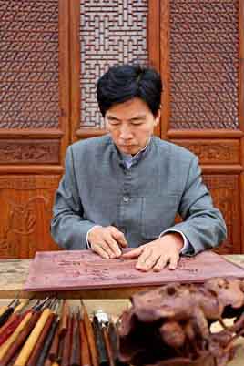 从事专业木雕学习实践工作至今已有三十多年。三十多年的理论与实践探讨不仅使他有深厚的理论功底、娴熟的专业技术、扎实的设计基础,而且在木雕行业的专业创作设计和工艺应用上更是独树一帜,别具一格!